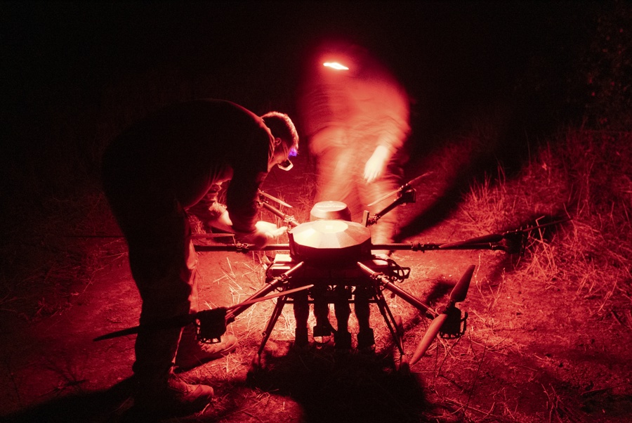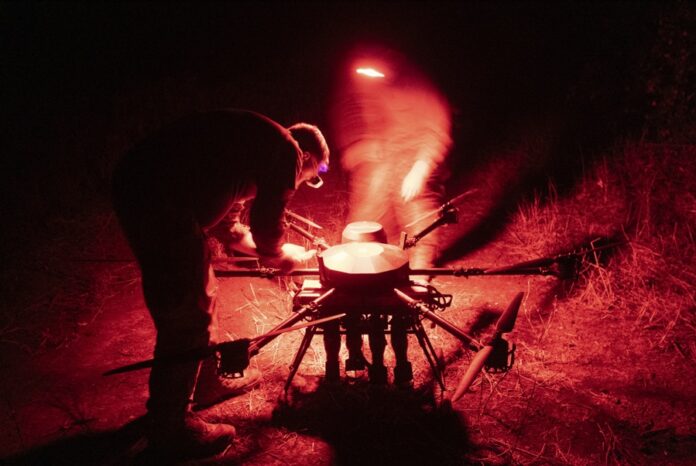 Militares ucranianos instalan un dron «Vampire» antes de despegar hacia la posición de las tropas rusas, en un lugar no revelado cerca del frente en dirección a Donetsk, Ucrania, el 23 de septiembre de 2025, en medio de la invasión rusa en curso. Vampire es un dron bombardero desarrollado por la empresa ucraniana SkyFall, en producción desde 2022. EFE/SERGEY SHESTAK