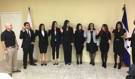 Tegucigalpa – Al menos ocho nuevos Fiscales que son parte del Fiscal José Lenin Rodríguez Arteaga (QDDG) fueron juramentados este día por el Fiscal General de la República, Oscar Fernando Chinchilla, quienes serán distribuidos en oficinas regionales y locales para fortalecer el quehacer diario del Ministerio Público.