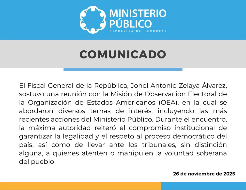 De acuerdo a lo informado por la Fiscalía hondureña, durante la reunión se abordaron temas de interés, incluyendo las recientes acciones del Ministerio Público.
