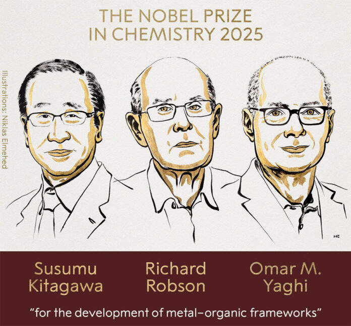 Copenhague – El Premio Nobel de Química 2025 es para el japonés Susumu Kitagawa, el británico Richard Robson y el jordano Omar M. Yaghi «por el desarrollo de estructuras metal-orgánicas», anunció este miércoles la Real Academia de las Ciencias Sueca.