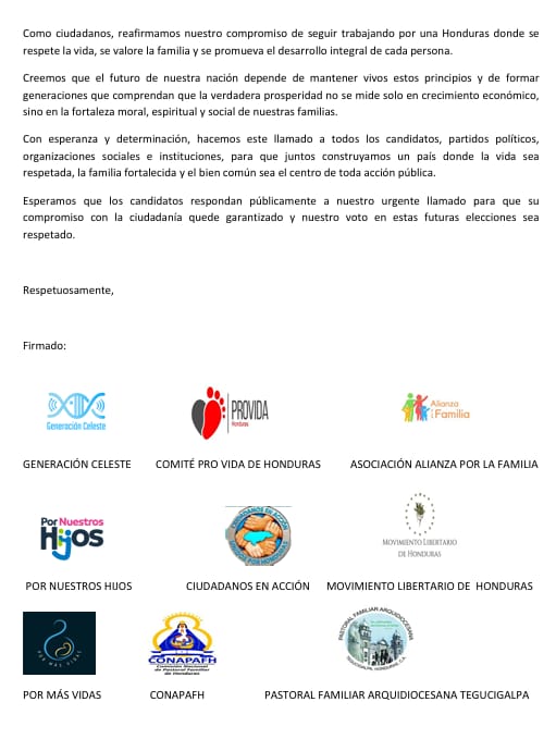 Tegucigalpa – Diversas organizaciones de la sociedad civil piden a los candidatos a la presidencia que pongan a la familia en el centro de sus políticas públicas.