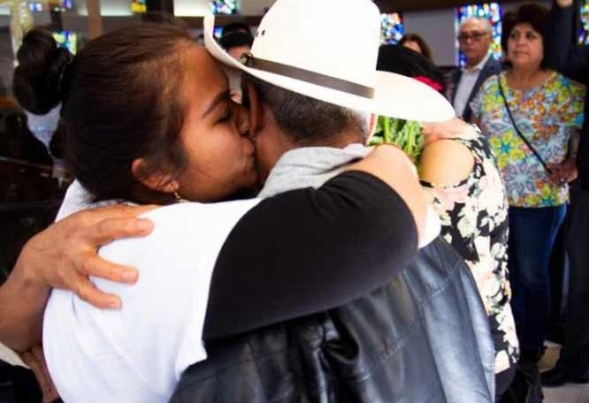 Elías Pardo llegó para ver a su hijo José. Visiblemente emocionado y al son de la música que tocaba un grupo de mariachis, el inmigrante abrazó a su hijo, a quien vio por última vez hace 18 años.