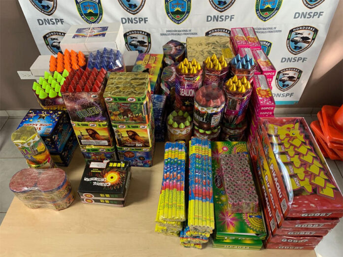 Tegucigalpa – La Dirección Nacional de Servicios Policiales Fronterizos (DNSPF), con el respaldo del Grupo de Operaciones Especiales Tácticas (GOET), interceptó un cargamento ilegal de pólvora procedente de El Salvador que representaba un riesgo de lesiones graves y mutilaciones en menores de edad.