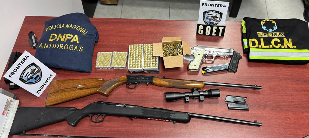 Entre los decomisos se contabiliza una pistola calibre 9 milímetros, dos fusiles calibre .22, cargadores metálicos para armas cortas y largas, accesorios para arma larga, así como un total de 825 cartuchos de munición de diferentes calibres, los cuales fueron asegurados conforme a los protocolos establecidos.