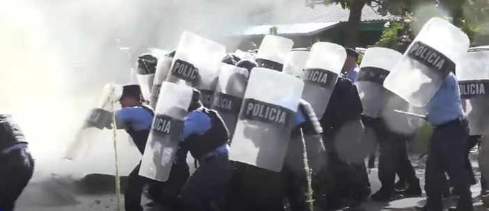 Posteriormente, miembros de la Policía Nacional aparecieron con tanquetas y empezaron a lanzarles agua para que los protestantes desalojaran las calles.