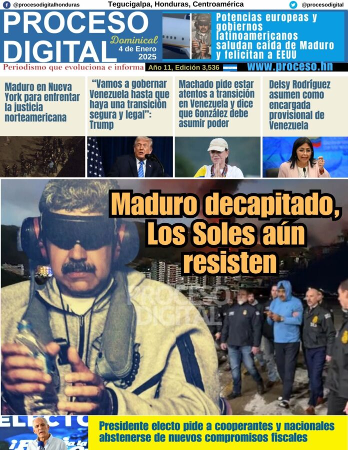 Portada DigitalPortada Domingo 04.01.2026.Por: Proceso Digital3 de enero de 2026FacebookTwitterWhatsAppEmailImpresión Noticias recientes NacionalesGobierno juramenta comisión interventora del sistema penitenciario Frase del día“Rechazo, censuro y condeno cualquier alianza oportunista que algunos estén haciendo con el Partido Nacional a cambio de chambas o privilegios para unos pocos... PolíticaNegociar con Libre no es el camino porque ese es el mandato del pueblo: Jhosy Toscano Portada DigitalPortada Martes 06.01.2026. NacionalesLa ENEE acumula asfixiante deuda de L 100 mil millones