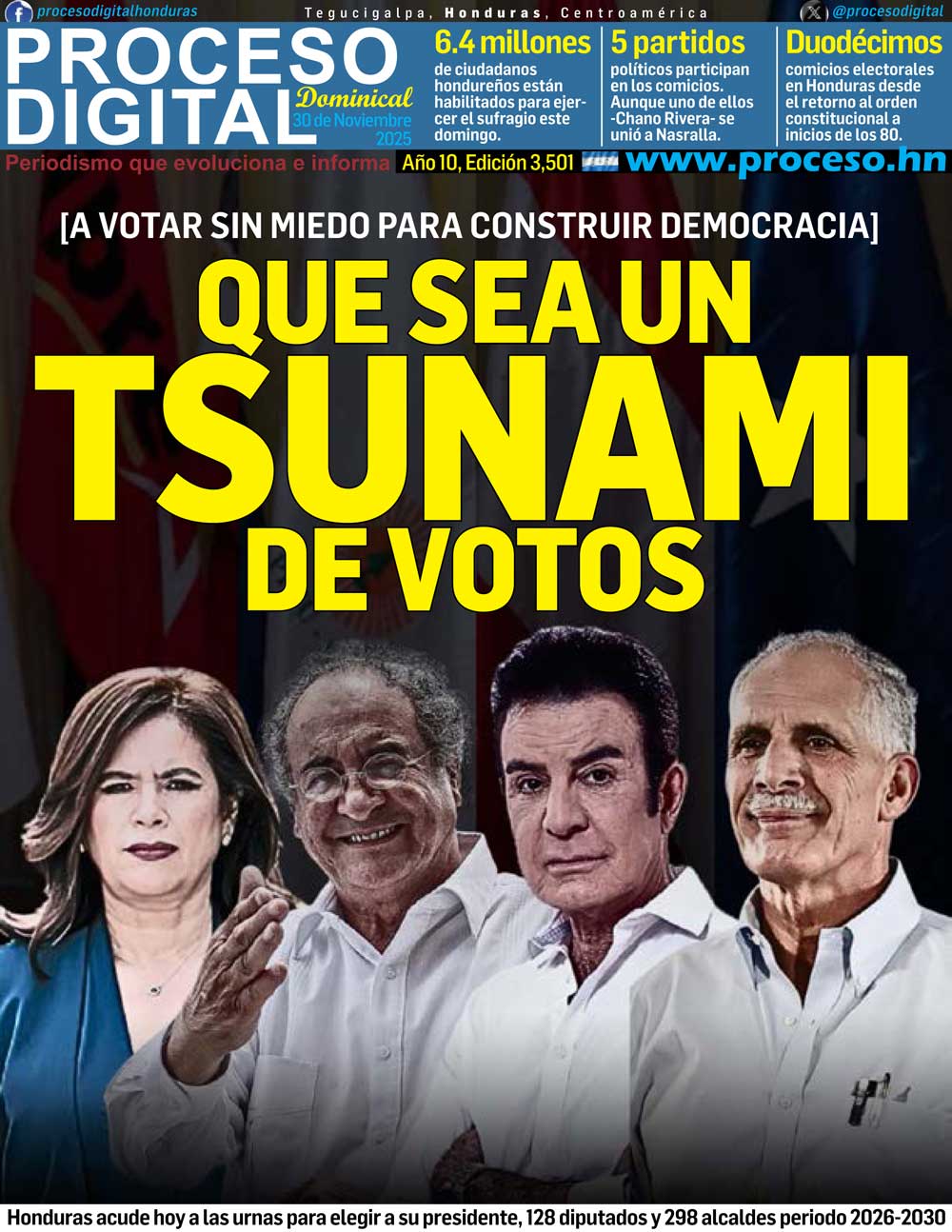 Portada DigitalPortada Domingo 30.11.2025.Por: Proceso Digital29 de noviembre de 2025FacebookTwitterWhatsAppEmailImpresión Noticias recientes DeportesEl exmadridista Danilo, primer jugador en ganar dos veces Liga de Campeones y Libertadores MigrantesVarios manifestantes arrestados por bloquear el paso a agentes migratorios en Nueva York FarándulaJenna Ortega dice que hay un extraño encanto en el ser humano que la IA no puede sustituir PolíticaQue sea “un tsunami” de votos PolíticaCossette López denuncia ser víctima de agresión por Marlon Ochoa a horas de comicios