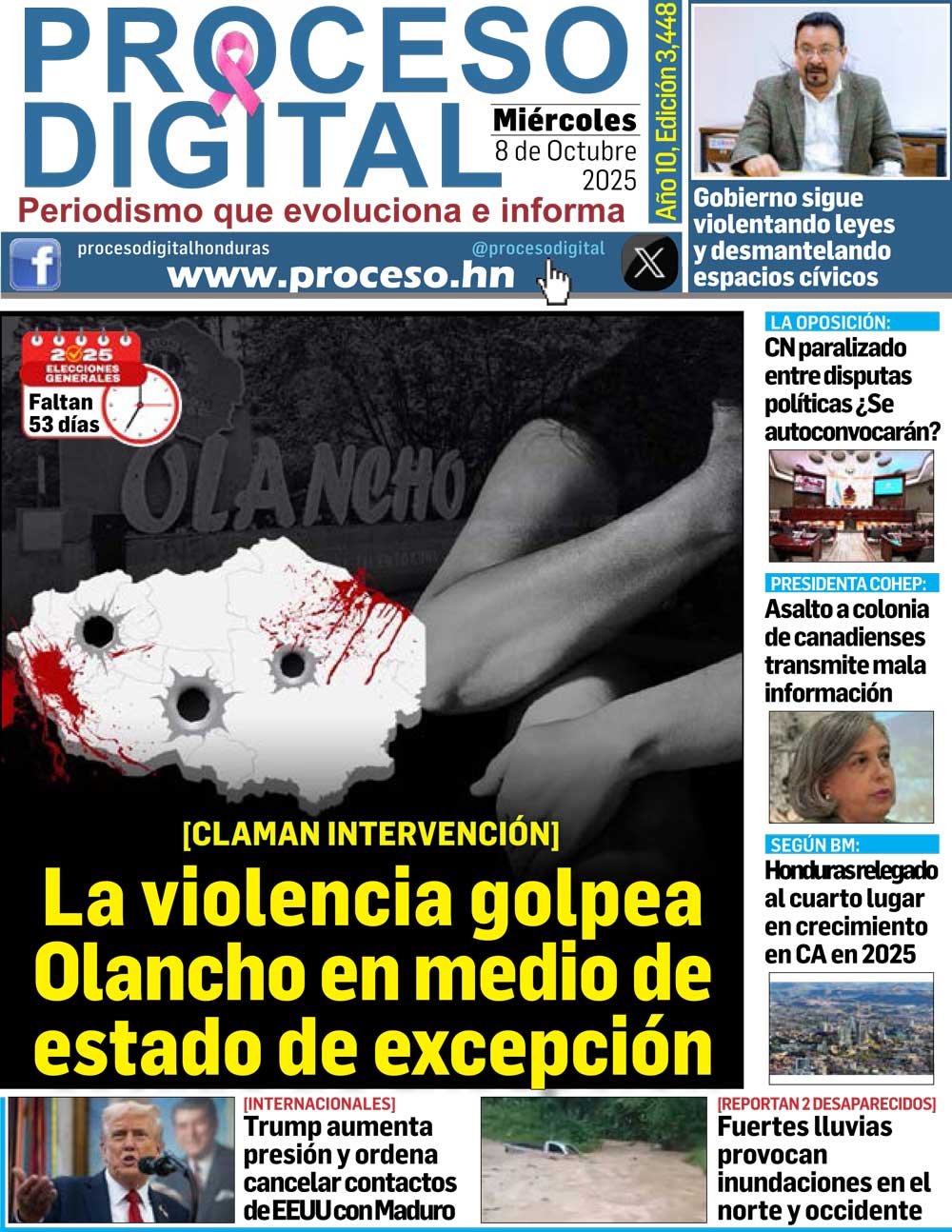 Portada DigitalPortada Miércoles 08.10.2025.Por: Jorge Sierra7 de octubre de 2025FacebookTwitterWhatsAppEmailImpresión Noticias recientes SaludSalud confirma 169 casos de gusano barrenador en humanos en Honduras MigrantesLas detenciones de extranjeros en frontera suroeste de EEUU descienden a niveles de 1970 InternacionalesLocalizados los cuatro cadáveres de las víctimas del derrumbe de un edificio de Madrid NacionalesEspaña financia varios proyectos de agua y saneamiento en Colombia, Honduras y Paraguay Deportes1-4. México elimina a Chile y espera por Argentina o Nigeria en cuartos