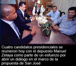 Los presidenciables se mostraron abiertos a construir caminos de diálogo mientras que Zelaya dijo estar dispuesto a retomar la propuesta de San José.