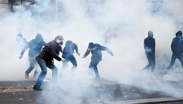 Los enfrentamientos estallaron poco antes de las 16.00 hora local (15.00 GMT) en avenidas del este de la ciudad, donde se constituyó un grupo de lo que se conoce como «black bloc» formado por al menos 500 radicales, según fuentes oficiales citadas por la emisora «France Info».