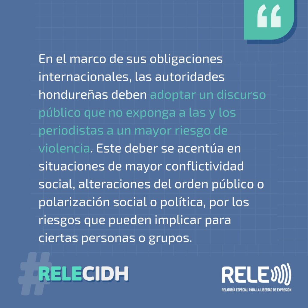 El organismo interamericano enfatizó que, en el marco de sus compromisos internacionales, las autoridades hondureñas deben adoptar un discurso público responsable que no exponga a las y los periodistas a mayores riesgos de violencia.