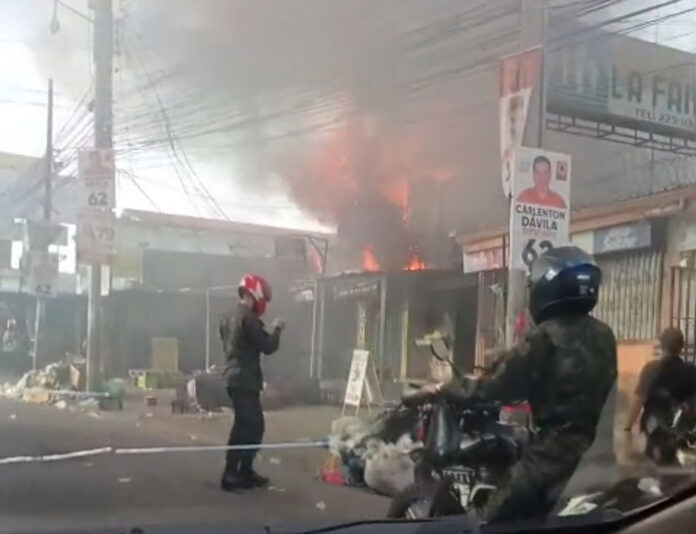Tegucigalpa – Miembros del Cuerpo de Bomberos se desplazaron hasta las inmediaciones del Mercado Zonal Belén, en Comayagüela.