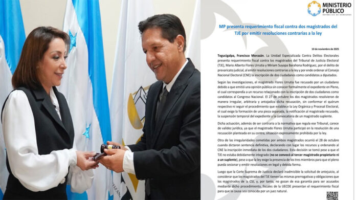 Tegucigalpa – El requerimiento fiscal del Ministerio Público en contra de dos magistrados del Tribunal de Justicia Electoral (TJE) representa una serie de amenazas a la estabilidad democrática e institucional del país.