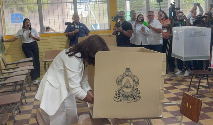 Tegucigalpa – La presidenciable del Partido Libertad y Refundación (Libre), Rixi Moncada llegó temprano este domingo a ejercer el sufragio en el Centro de Educación Prebásica en la colonia Centro América Este, en la capital hondureña.