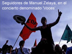 Grupos musicales nacionales e internacionales animaron el concierto de los zelayistas, mientras algunos de sus dirigentes expresaban que esta semana era “decisiva” para la resistencia que cada vez observa como se alejan las posibilidades reales de que vuelva Zelaya. En paralelo, preparan la visita de dos días al país del juez español, Baltasar Garzón, así como de la Secretaria del Tribunal Penal Internacional, como otro de los mecanismos para “meter presión” a Micheletti y su gobierno, que junto con los militares y el resto de políticos, buscan ser “intimidados” ante una posibilidad de que éstos grupos los lleven al tribunal penal internacional para acusarlos por delitos de “genocidio”, algo que fue descartado por la reciente Comisión Interamericana de Derechos Humanos (CIDH), que si bien registró violaciones a los derechos humanos, no encontró “las decenas” de muertes, los “campos de concentración” ni el “holocausto” en derechos humanos denunciados por organismos humanitarios locales, internacionales y ciertos medios de prensa afines al ex gobernante hondureño. Del lado, del gobierno transitorio, la vicecanciller interina, Martha Lorena Alvarado, declaró a medios internacionales de prensa, que en la visita de los cancilleres de la OEA, “yo quisiera que se termine la dialéctica de estar tratando de convencer al mundo de lo que pasó aquí”, tras subrayar que el reto inmediato para Honduras “son las próximas elecciones”.