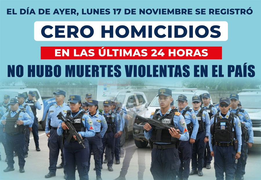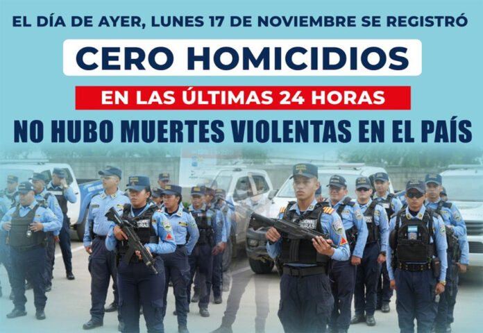 Tegucigalpa – De acuerdo al ministro de Seguridad, Gustavo Sánchez, Honduras registró cero homicidios durante el lunes 17 de noviembre.