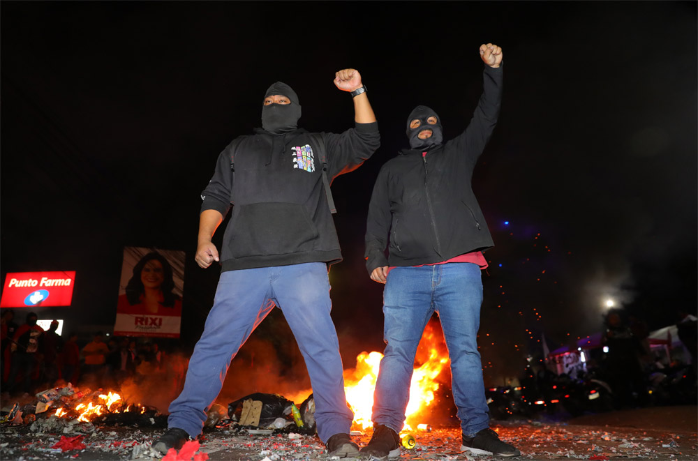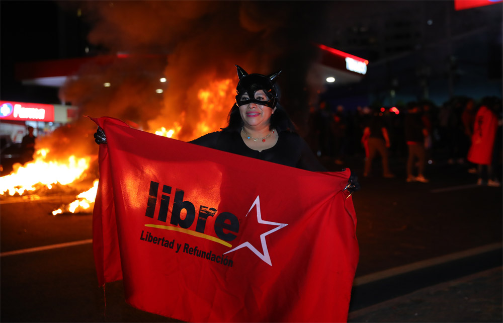 El motivo de la protesta es para apoyar al alcalde capitalino Jorge Aldana, que está perdiendo en los resultados preliminares, ante el nacionalista Juan Diego Zelaya.