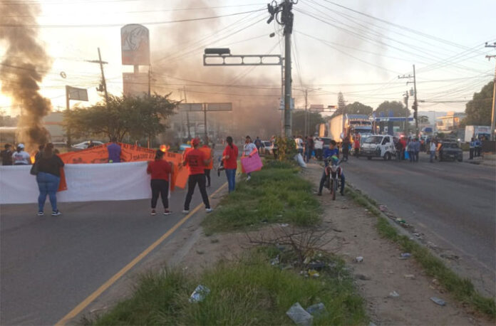 En el lugar los manifestantes colocaron llantas como barricadas para evitar el tránsito vehicular.