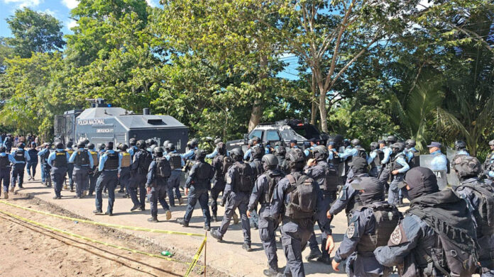 Tocoa – La Policía Nacional desalojó este miércoles a miembros de la Plataforma Agraria que se habían tomado la finca “Camarones” en el sector Quebrada de Arena en el municipio de Tocoa, departamento de Colón, Caribe hondureño.