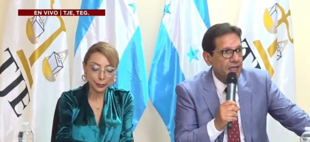Tegucigalpa– En conferencia de prensa, los magistrados del Tribunal de Justicia Electoral (TJE), Mario Flores Urrutia y Miriam Barahona, dieron a conocer este martes la determinación adoptada por mayoría simple de confirmar la inscripción de Jorge Cálix como candidato a diputado por el departamento de Olancho, así como la de Cristian Villalobos como candidato por el departamento de Valle.