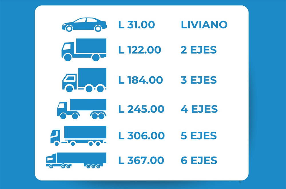 Igualmente, los vehículos de cinco ejes registrarán un aumento de 224 a 306 lempiras, un ajuste de 82 lempiras.