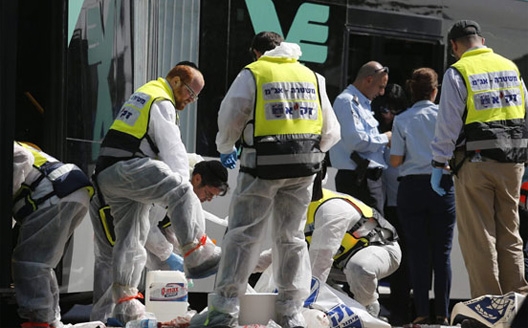 El portavoz policial para medios extranjeros, Miki Rosenfeld, dijo junto al vehículo que «dos terroristas, uno amado con una pistola y otro con un cuchillo llevaron a cabo el ataque terrorista en el barrio relativamente tranquilo de Armón Hanatziv en el interior de un autobús».