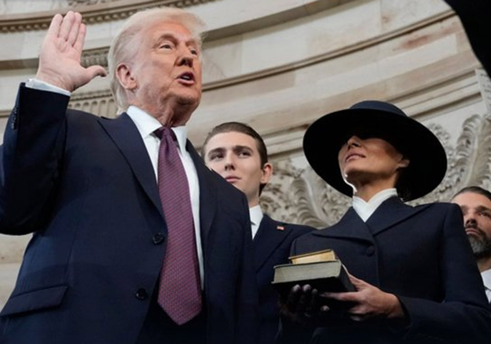 Trump prestó juramento con la mano derecha en alto y la izquierda sobre las mismas dos biblias que utilizó en su primera toma de posesión en 2017: su Biblia personal y la del expresidente Abraham Lincoln.