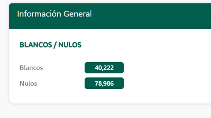 Entre tanto, los votos nulos suman 78 mil 986, según datos actualizados hasta la tarde de este martes.